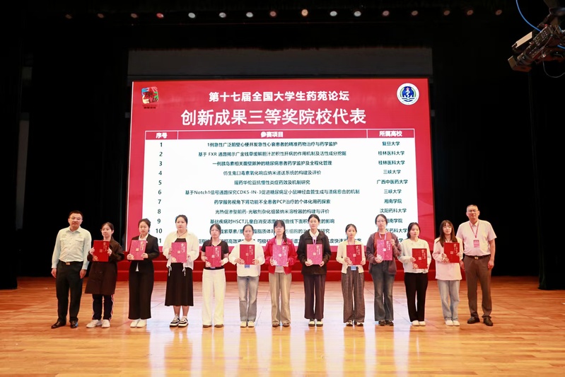 2025年10月18日,第十七届全国大学生药苑论坛决赛在中国人民解放军海军军医大学圆满落幕。本届论坛由全国药学类院校大学生专业技术与实验技能竞赛组委会主办、中国人民解放军海军军医大学承办,共吸引126所高校279项作品同台竞技,参赛规模与质量双双创下历史新高。我院学子在激烈赛事中脱颖而出,斩获创新成果特等奖、二等奖、三等奖、优秀论文奖及优秀壁报奖。